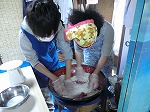 次に水をいれて捏ねます。まるで職人さんの様ですね。