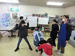 3人1組になり、1人は「粘土」残りの2人は「彫刻家」の役割で、お題のポーズにより近いポーズを目指します。