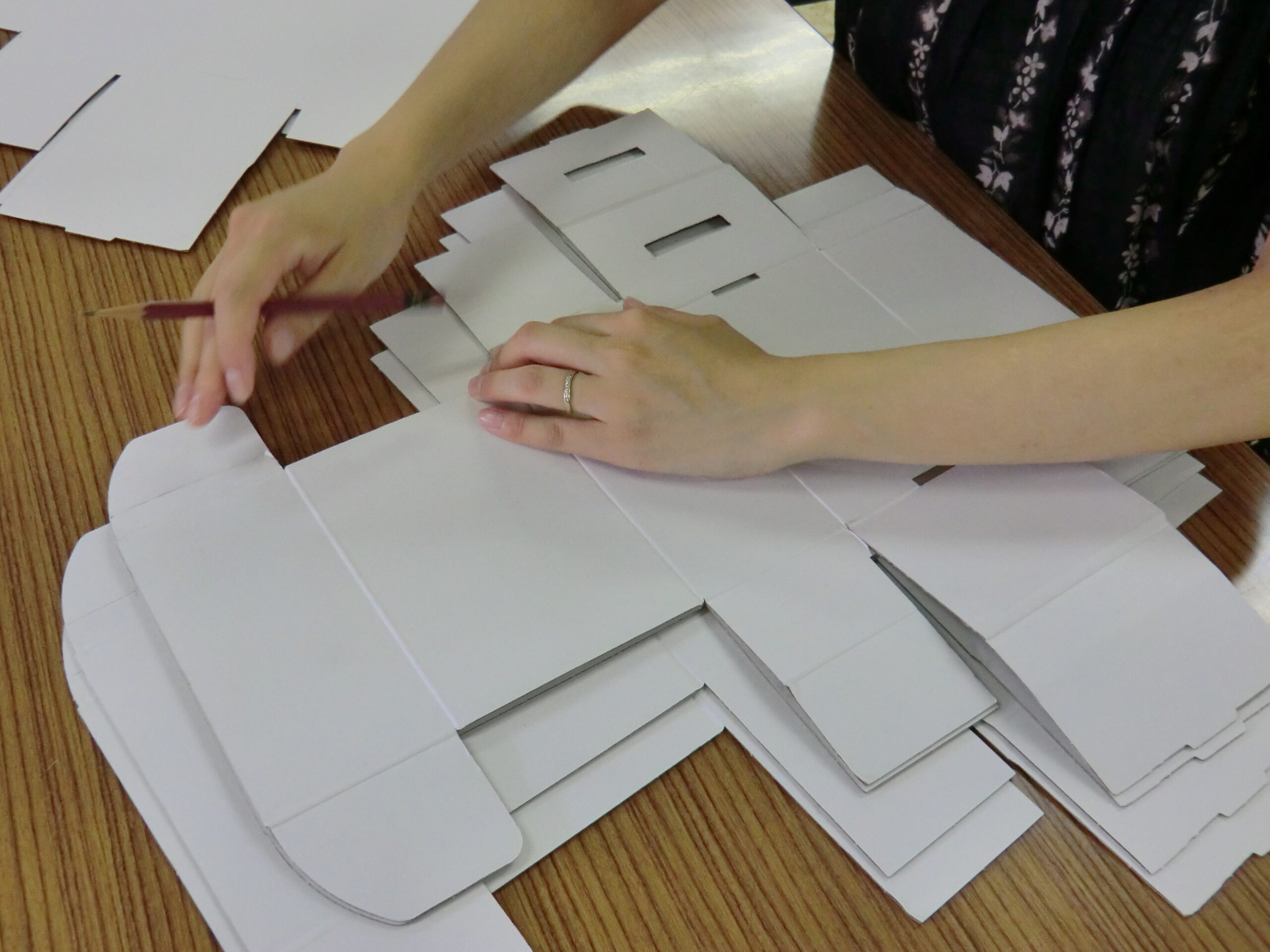 その後は、募金箱の型紙に 穴をあけたり切り込みを入れる作業をしました。