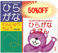 日頃のご愛顧に感謝しまして、9月1日~9月30日までの期間限定で、「ひらがなえほん」と合わせてお買い上げいただいた方には、「ひらがなれんしゅうちょう」を 50%OFF で販売いたします。