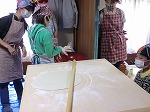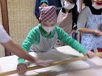 のし棒を上手に使って手前から少しづつ延ばし、これくらいになったら子ども達の出番再び。