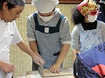 内藤さんにお手本を見せてもらってからそば切りに挑戦。
