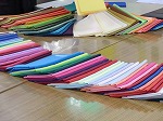 ファッション雑誌の切り抜きを張り付けた画用紙20枚程を春夏秋冬の色にわけます。