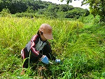 「稲を刈る係」を引き受けた男の子達。初めての子も、稲刈り歴6年の子も、みんなせっせと稲を刈っていました。
