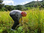 約2時間の作業で、田んぼ一枚の四分の一を刈り終えました。暑い中、本当にみんなよく働いていました。