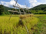 まずは、自然生クラブの柳瀬さんに稲刈りの手順を説明してもらいました。「稲を刈って→束をつくって紐で縛って→おだに掛ける 」の作業です。皆のアイディアで分業することにしました。