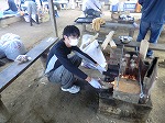 鉛筆を束にする作業では、芯の濃度別に束分けをしました。