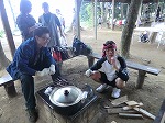 バーベキューの後のフリータイムを考えて、ジャージ姿で頭にタオルを巻いてきた子どもも。