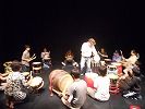 後半は、輪の中央で1人が親太鼓としてたたいて、それを他のみんなで真似をする形の演奏もしました。