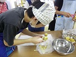 ピーラーを使ったことがない子もたくさんいて、デコボコしたじゃがいもに刃をあてて・・という細かい作業にやや苦戦!