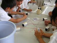社会人講師派遣事業>2004>おもしろ実験(木炭で電池をつくろう、炭酸ロケットを飛ばそう)