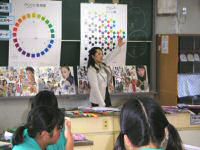 「パーソナルカラー」って知っていますか?同じ赤でも“春・夏の赤”と“秋・冬の赤”があり、その人によって似合う赤があるそうです。 説明を受けながら、生徒達がそれぞれグループになり「パーソナルカラー診断」を行いました。「あなたはこっちのほうが似合うね。」など友達からアドバイスを受けたり、アドバイスをしたり・・・。先生達にカラー診断をする生徒もいて、あちこちから楽しそうな会話が聞こえてきました。色を通して今まで気づかなかった自分自身の発見にもなったようです。