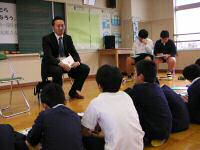 子ども達の人気NO.1の職業“パティシエ”。水戸でお店を開く磯崎さんに来ていただき、子ども達の質問に答えていただきました。お店ではなんと500種類のケーキを作っているそうで、自分で考たケーキが形になりおいしくできたときはとっても嬉しいそうです。 「お菓子作りは、何もないところから色々なものを組み合わせて作り出していきます。理科の勉強と似ているところがあるのですよ。」との言葉にはみんなびっくり! 他にもパティシエとしての仕事の内容やどうしたらなれるのかなどをお話していただきました。