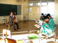 2日間計4時間指導をしていただきました。1回目は基本となるギターの構え方、指の使い方を練習。ギターの構え方一つで音色も変わってくるそうです。ギターを手にして生徒達はみな苦労しながらも何度も何度も練習しました。2回目の授業では「四季の歌」の曲に挑戦。練習の成果が一つの曲になるのは何ともうれしいもの。最後まで弾けるようになろうとさらに練習に熱が入っていました。最後には千葉さんの生演奏も聞くことができました。
